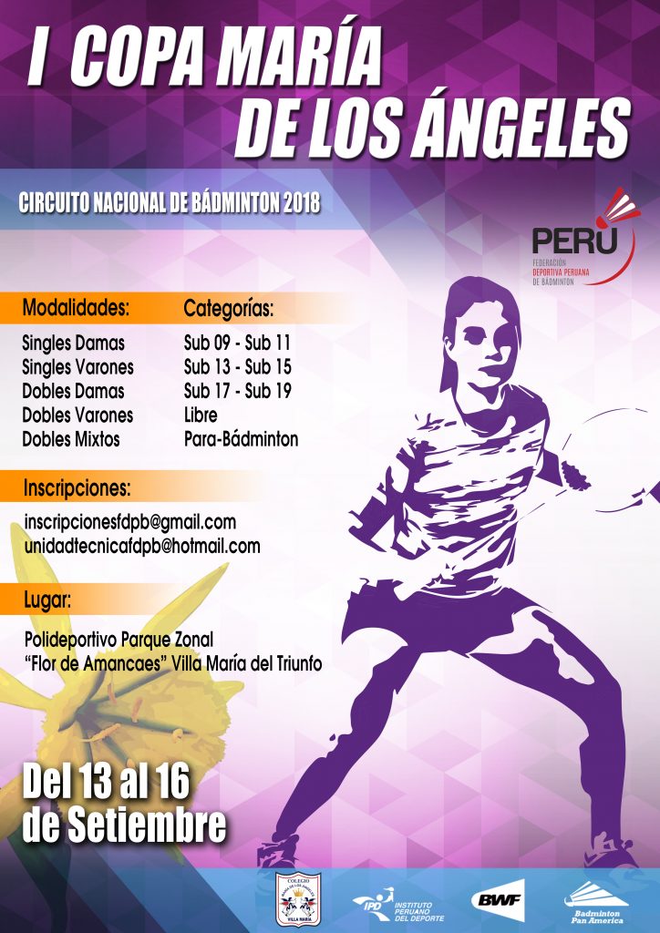 La I Copa María de los Ángeles, valido por la séptima parada del circuito nacional, se desarrollará en Villa María del Triunfo, al sur de Lima. El certamen nacional se realizará en el Polideportivo Parque Zonal “Flor de Amancaes”.